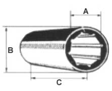 För axlar med mått i millimeter.