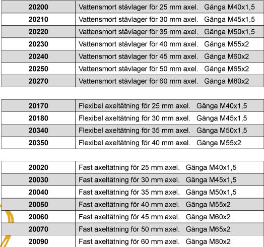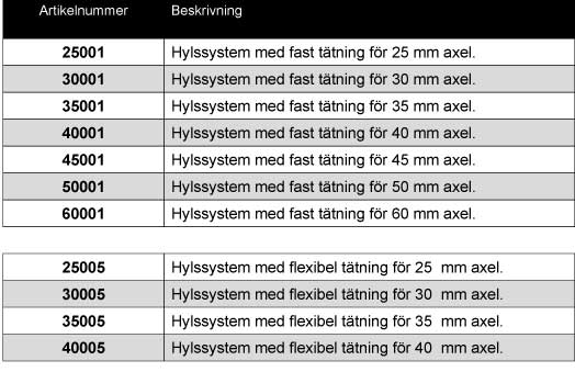 hylssystem, propelleraxellager och axeltätningar av