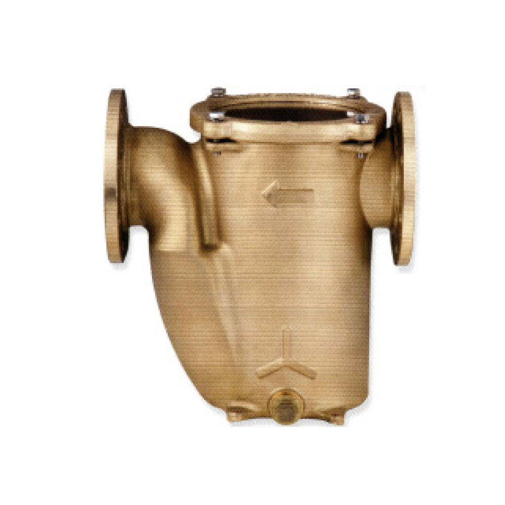 Kylvattenfilter i brons med genomskinligt polycarbonatlock för lätt inspektion och kontroll av igensättningsgraden