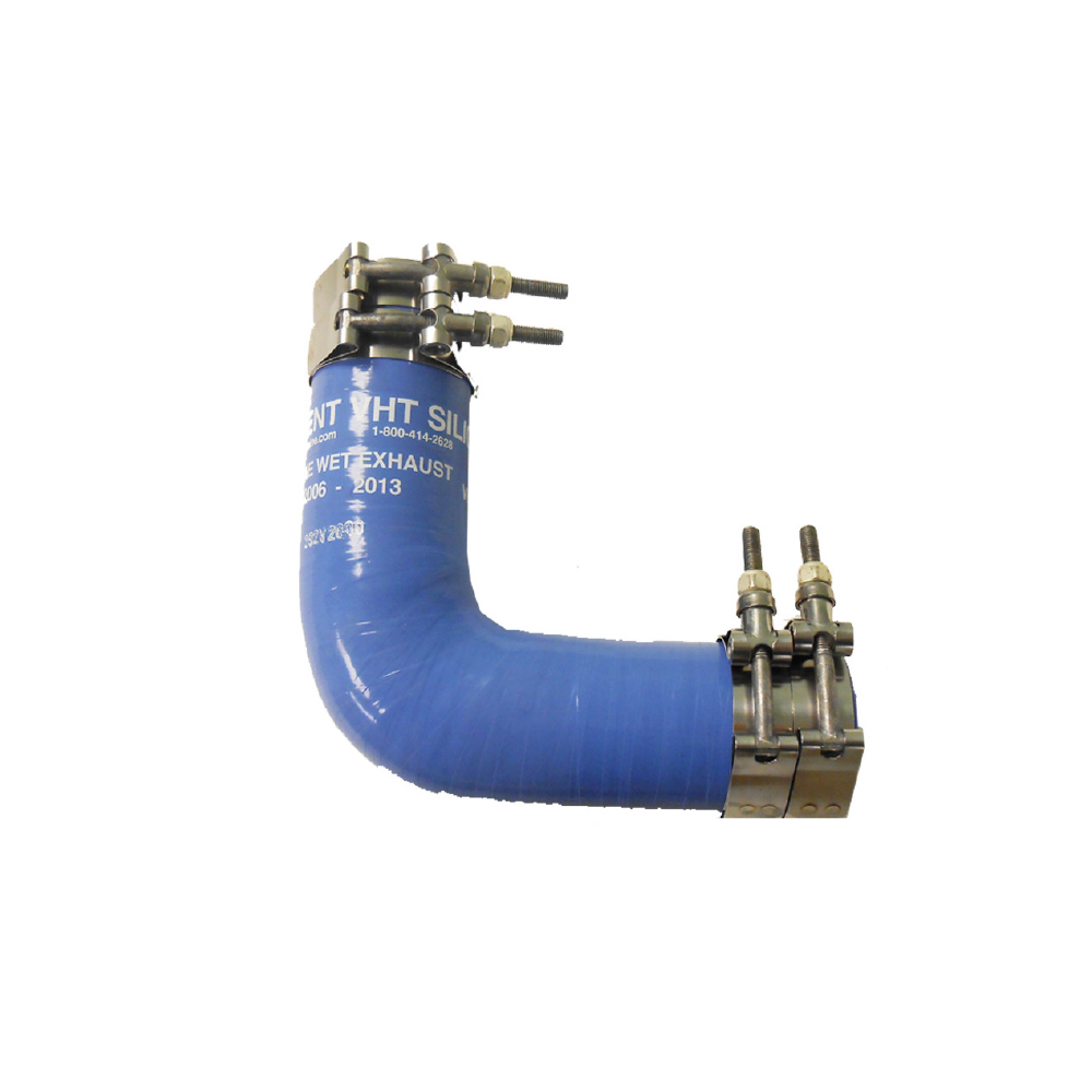 från motor till skrov via en styv avgasslang. Motorn får en